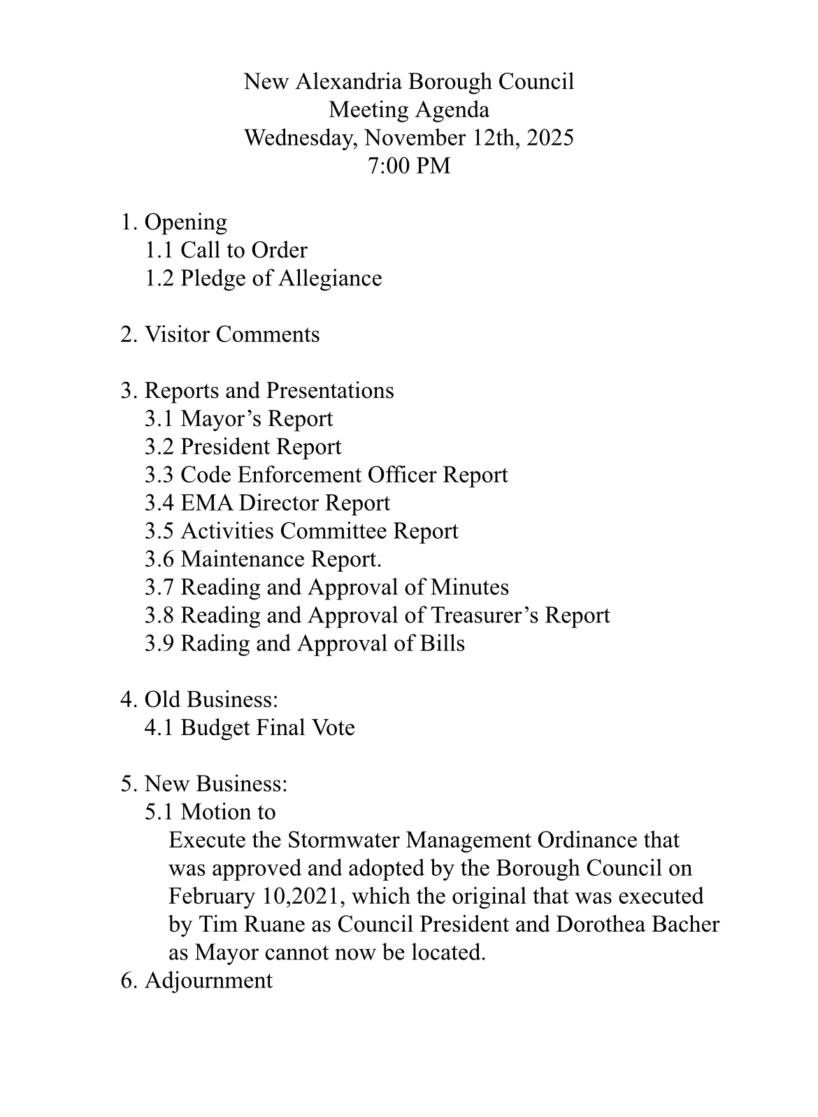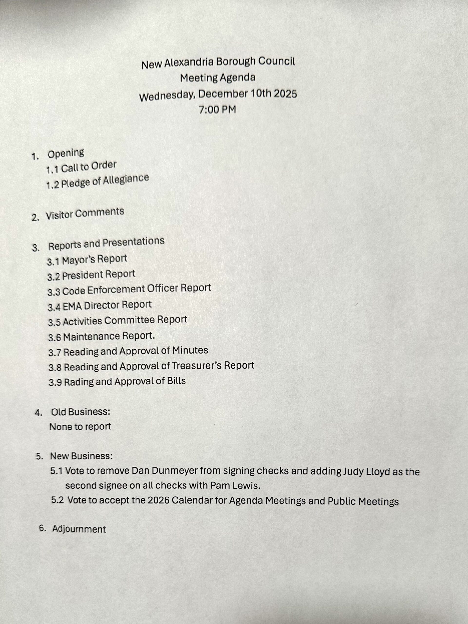 Agendas and meeting minutes not found on this page are located in the borough office as hard copies.